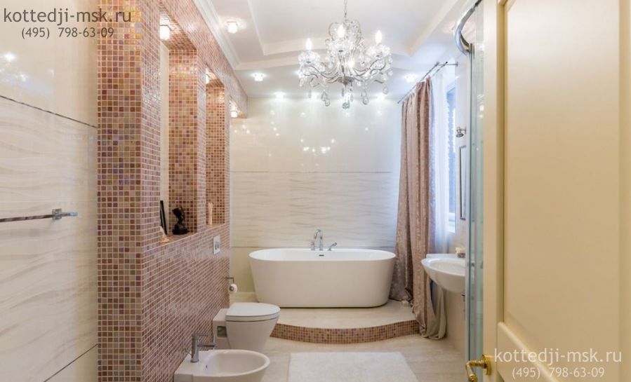 Просторный холл с кухонной зоной, роскошная мраморная лестница, 4 спальни с гардеробными, 4 cанузла, большая игровая комната с видом на аллею. На мансарде спа-зона с сауной , джакузи и камином. Помещение под домашний кинотеатр.