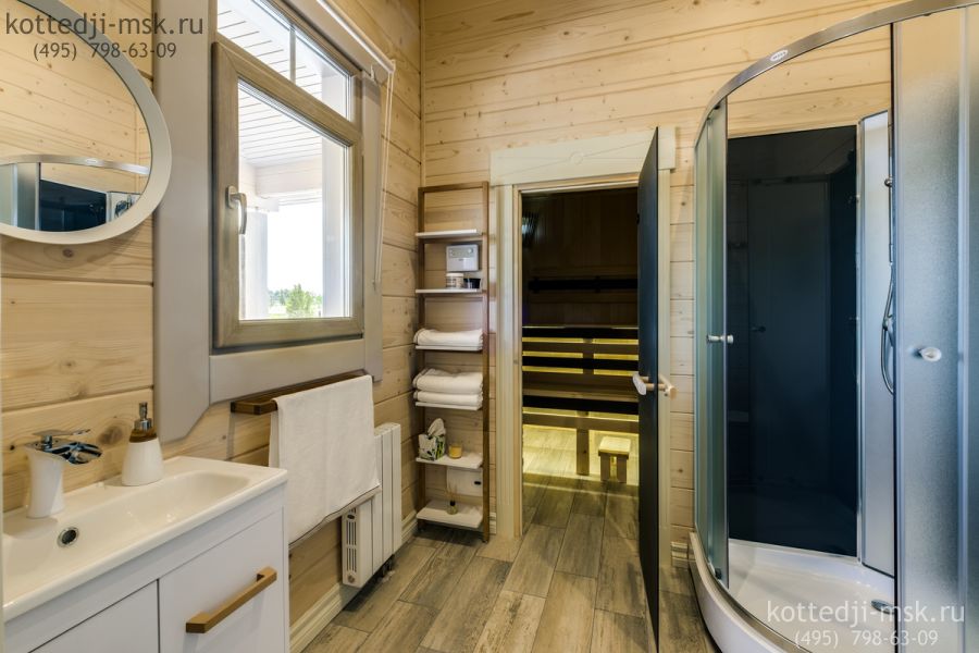 Построен из елового клеенного бруса премиум класса и покрыт снаружи краской Sikkens!