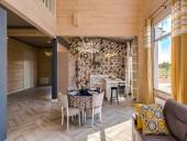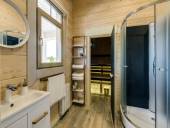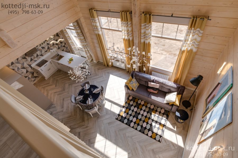 1 этаж: просторная прихожая, санузел с сауной, спальня с ванной комнатой и гардеробной, кухня переходящая в столовую-гостиную со вторым светом и био-камином, терраса.